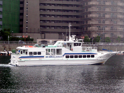 | 淡路ジェノバラインの旅客船"ジェノバⅠ"です。2003/6/18より"ジェノバ"の代船として明石~富島航路に就航しています。 以下の写真は2004/5に明石港にて撮影したものです。"ジェノバ"と比べてもかなりがっしりした印象があります。なお、本船は小型旅客船では初めてバリヤフリー化されているとのことです。 |