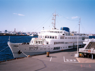 この写真のみ1991年撮影です。比較してみると、煙突や船体側面の船名など、ここ10年で変化している部分は一部のように感じられます。 |