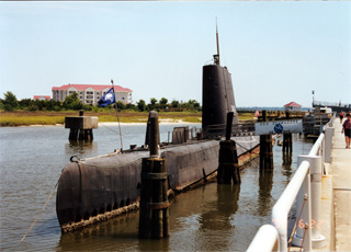| 米国のBalano級潜水艦、Clamagore(SS-343)です。1945年2月に進水、1945年6月に就役、主に大西洋や地中海にて任務に従事し、1975年に退役しています。現在は、米国サウスカロライナ州のチャールストン近郊にある