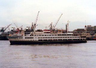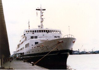 | "くれない丸"は関西汽船が阪神~別府航路に投入した初の3000トン級客船で、1960年に就航以来、1988年まで瀬戸内の各航路で活躍しました。以下の写真は1977年に神戸港および大阪港で撮影したものです。 この"くれない丸"級は、歴代の内航客船の中では最も好きな部類に入ります。なんといってもその均整のとれた船容は、この程度の大きさの客船では珍しかったと思います。"くれない丸"には、一度大阪の弁天埠頭から神戸の中突堤まで乗船したことがあります。乗船時には既に盛りを過ぎていましたが、神戸に着くまでの1時間少々の間、船内をくまなく歩き回った記憶があります。 なお"くれない丸"は1985年に佐世保重工に売却され、その後1988年よりレストラン船"ロイヤルウイング"として横浜港にてなおも活躍中です。 |