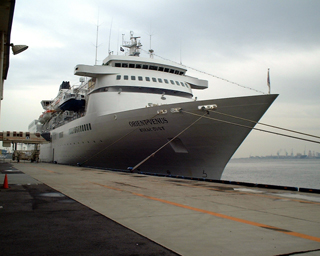 | 日本クルーズ客船の"おりえんとびいなす"です。1990年に就航しています。 以下の写真は、2001年9月に神戸港にて撮影したものです。"おりえんとびいなす"にはこの撮影時に初めてお目にかかった状態で、"ぱしふぃっくびいなす"との区別もあまりついていませんでした。デザイン的にはRoyal Caribbean風の展望室がポイントでしょうか。 |