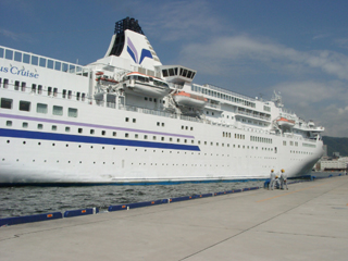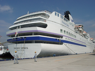 日本クルーズ客船の"ぱしふぃっくびいなす"です。就航は1998年であり、かなり新しいクルーズ客船です。