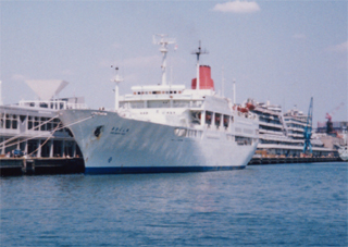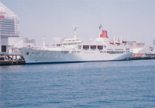 | 商船三井客船が運行していた"新さくら丸"です。1972年に"さくら丸"に代わる巡航見本市船として竣工、その後1981年にクルーズ客船に改装され、1999年に引退するまで活躍しました。2001年11月にスクラップにされるべく中国へ回航されています。 先日「世界の艦船」を読んで"新さくら丸"売却を知り、これを機に手持ちの写真を探したのですが、結局以下のような不鮮明なものしか見つかりませんでした。2枚とも1991年5月に東京港の遊覧船上から晴海埠頭に停泊中の"新さくら丸"撮影したものです。個人的には竣工当初の貨客船然としていてなおかつスマートな船容が大変気に入っており、その点では改装するに従ってスタイルが崩れていくのが残念でした。 |