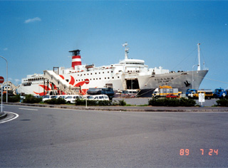 | 別府観光港に停泊中の"さんふらわあ"。 |