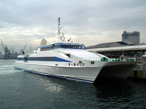 | 写真を1枚追加しました。なお、"びっぐあーす"もいつの間にかユニバーサルシティーポートへ寄港しなくなっていました。2003/10/1のダイヤ改訂からでしょうか。これでとうとう神戸経由のUSJ航路は潰えてしまいました。 | |
